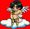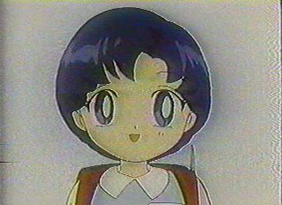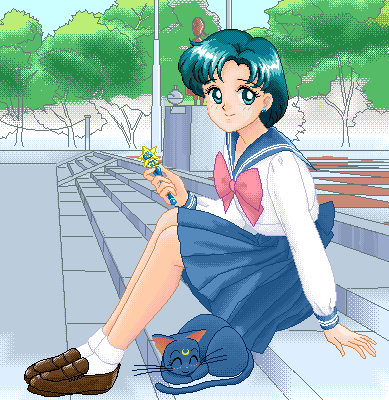 Ami sitting on some stairs, with Luna sleeping nearby.