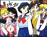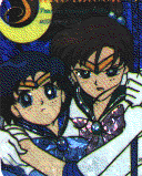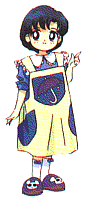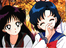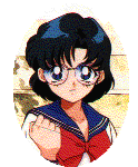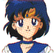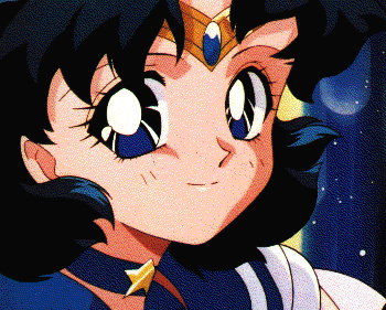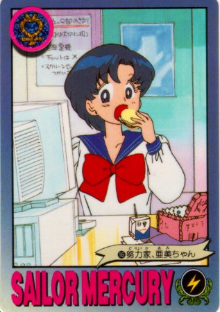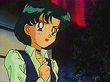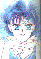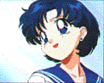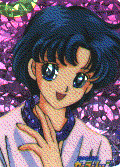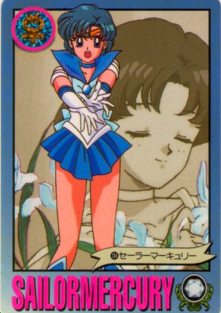Sailor Mercury in front of a sepia-toned Ami goddess portrait!