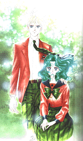 Haruka and Michiru in school uniforms.